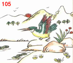 105期平特藏码图解释:图中右下角四个闪亮石头,解四岁生肖虎,开16;山那头六颗树,解6岁生肖鼠,开18。 |